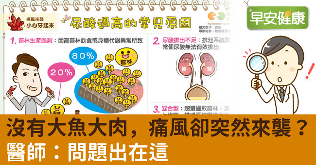 戴醫師叮嚀,控制飲食中的普林攝取只是預防痛風的第一步,其實有高達8成的尿酸是由身體代謝而來,因此強化身體代謝尿酸的能力才是預防痛風的關鍵!